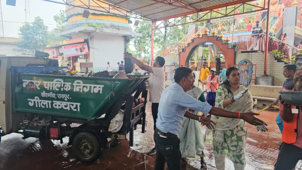 बीरगांव। स्वच्छता ही सेवा अभियान के तहत नगर पालिक निगम बीरगांव द्वारा आज वार्ड क्रमांक 16 स्थित बंजारी माता मंदिर परिसर में “एक घंटा – एक दिन – एक साथ” की थीम पर वृहद स्वच्छता महा अभियान चलाया गया।