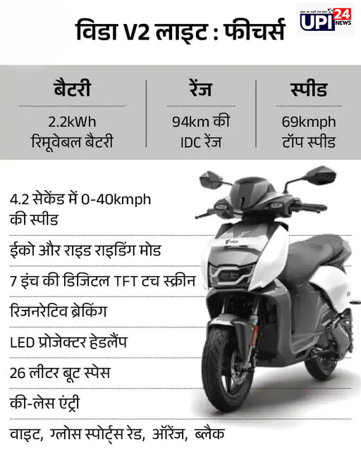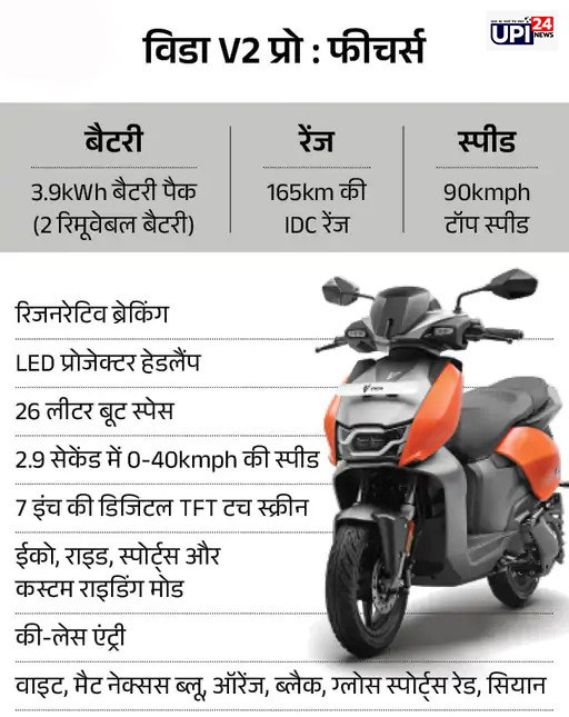कीमत: विडा V2 की शुरुआती कीमत ₹96,000 है, जबकि टॉप मॉडल V2 प्रो की कीमत ₹1.35 लाख तक जाती है।