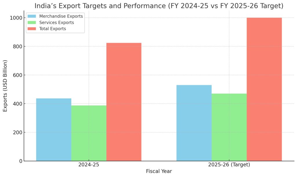 फिलहाल, FY26 के लिए 1 ट्रिलियन डॉलर का लक्ष्य महत्वाकांक्षी बना हुआ है और मौजूदा रुझानों के आधार पर भारत का निर्यात इससे कम रहने का अनुमान लगाया जा रहा है।
