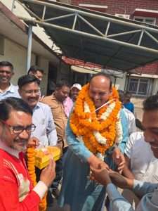 रायपुर – आज नगर पालिक निगम रायपुर के नवनिर्वाचित सभापति सूर्यकांत राठौर का नगर निगम जोन 2 कार्यालय पहुंचने पर जोन 2 जोन कमिश्नर डाॅ. आरके डोंगरे सहित जोन के सभी अधिकारियों एवं कर्मचारियों ने नगर निगम सभापति एवं निगम जोन 2 पदेन अध्यक्ष निर्विरोध निर्वाचित होने पर भव्य आत्मीय स्वागत करते हुए उन्हें बुके प्रदत्त कर एवं फूल मालाओं से लाद कर भव्य एवं आत्मीय स्वागत किया और प्रसन्नता पूर्वक अधिकारियों और कर्मचारियों ने जोन कार्यालय में नवनिर्वाचित सभापति के निर्वाचन पष्चात प्रथम आगमन पर मिठाईयां बांटी ।