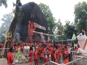 कबीरधाम जिले में प्रसिद्ध भोरमदेव मंदिर तक पदयात्रा निकाली गई। “हर-हर महादेव” और “बोल बम” के जयकारों से शहर गूंज उठा। इस पदयात्रा में प्रदेश के उपमुख्यमंत्री विजय शर्मा और क्षेत्रीय विधायक भी शामिल हुए और पंचमुखी बूढ़ा महादेव मंदिर में दर्शन कर पूजा की।