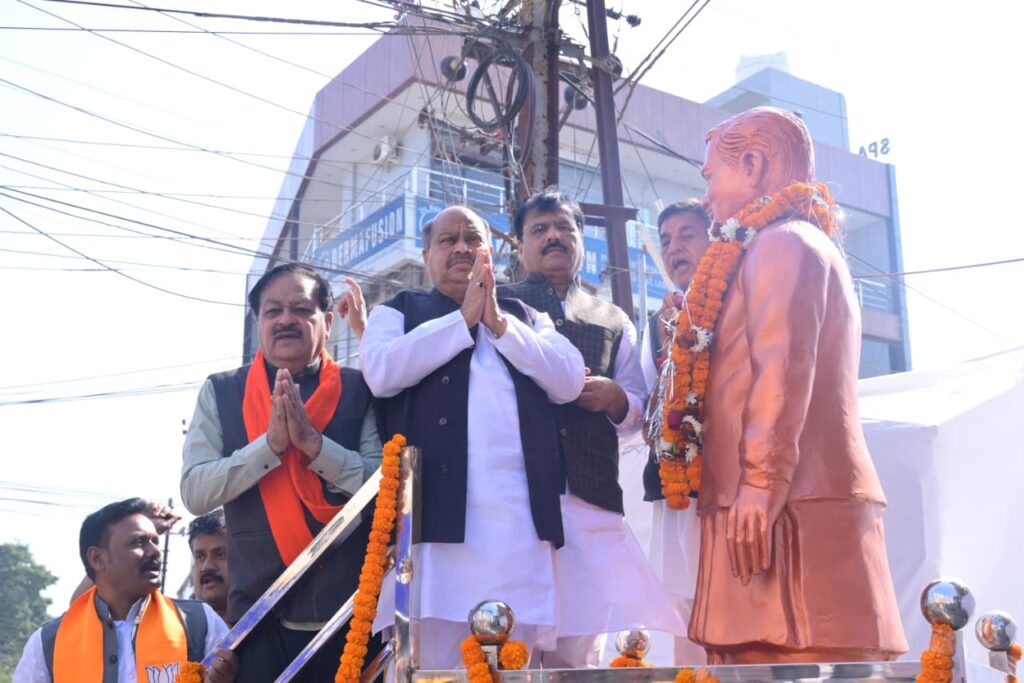 रायपुर । भारत गणराज्य के पूर्व प्रधानमंत्री, भारत रत्न श्रद्धेय स्वर्गीय अटल बिहारी वाजपेयी जी की 101वीं जयंती एवं सुशासन दिवस के अवसर पर राजधानी रायपुर में भावपूर्ण श्रद्धांजलि कार्यक्रम आयोजित किया गया। रायपुर नगर पालिक निगम के संस्कृति विभाग के तत्वावधान में तथा नगर निगम जोन क्रमांक-3 के सहयोग से अवन्ति विहार कॉलोनी स्थित अटल चौक (एटीएम चौक) में उनकी प्रतिमा के समक्ष पुष्पांजलि अर्पित की गई।