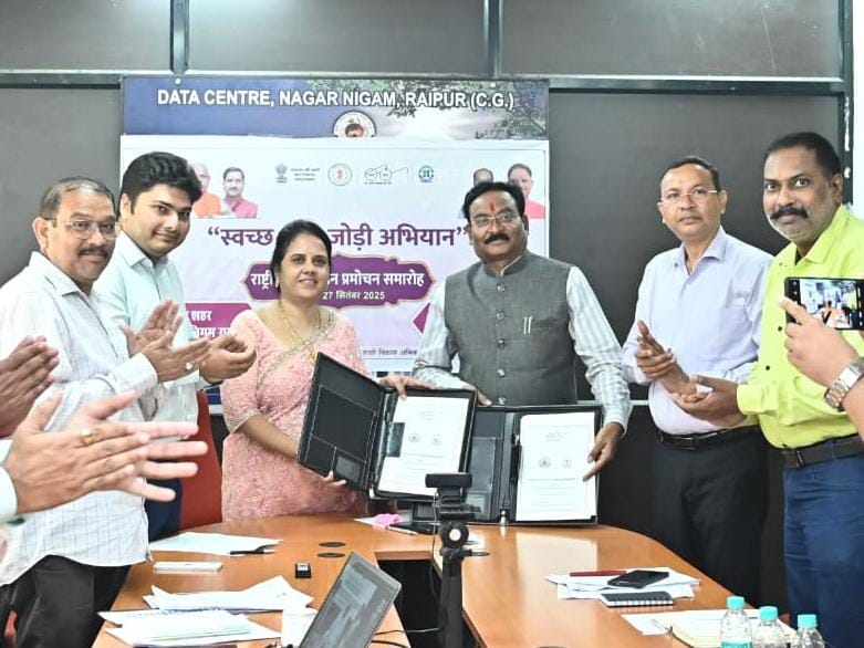 (27 सितंबर 2025, रायपुर) । केन्द्रीय आवासन एवं शहरी कार्य मंत्री श्री मनोहर लाल खट्टर ने शनिवार को राष्ट्रीय स्तर पर ‘स्वच्छ शहर जोड़ी’ पहल का वीडियो कॉन्फ्रेंसिंग द्वारा शुभारंभ किया। इस पहल के अंतर्गत रायपुर और बीरगांव की जोड़ी बनी है। रायपुर नगर निगम अब बीरगांव नगर निगम का स्वच्छता के क्षेत्र में मेंटर (मार्गदर्शक) बना है और बीरगांव मेंटी बना है। इस संबंध में दोनों निगमों के मध्य दोनों निगमों के मध्य वीडियो कॉन्फ्रेंसिंग के समय निर्देशानुसार समझौता ज्ञापन (एमओयू) पर रायपुर निगम मुख्यालय में हस्ताक्षर भी हुए हैं। रायपुर महापौर श्रीमती मीनल चौबे, आयुक्त श्री विश्वदीप, बीरगांव महापौर श्री नन्दलाल देवांगन और कमिश्नर श्री युगल किशोर उर्वशा ने एमओयू पर हस्ताक्षर कर साझा किया।