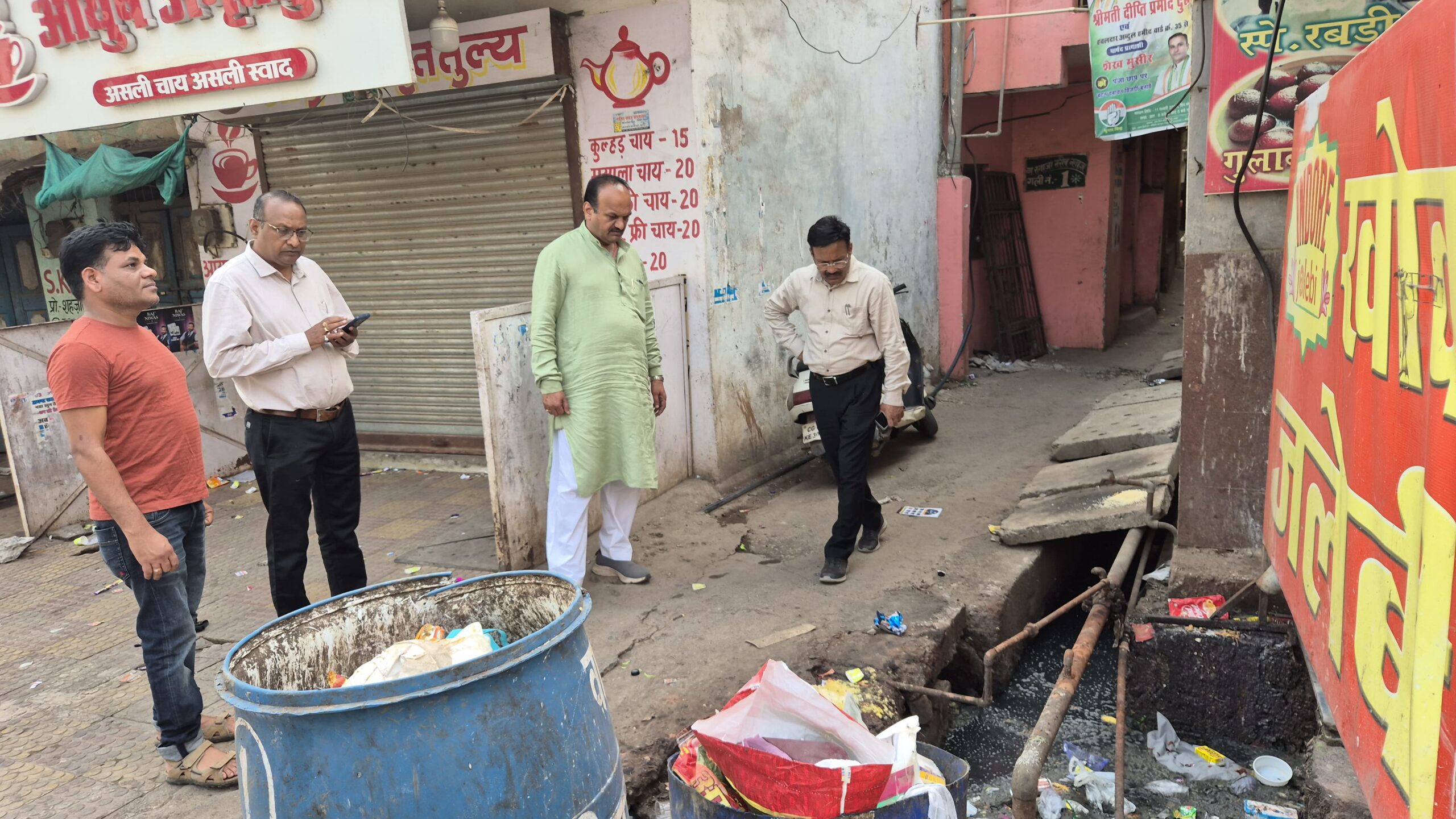 नालों में गाद और कचरे की अधिकता देखते हुए सभापति ने जेसीबी मशीन लगाकर और मैन्युअल सफाई के निर्देश दिए। जयस्तंभ चौक के पास नाला चेम्बर की तत्काल सफाई करवाई गई।