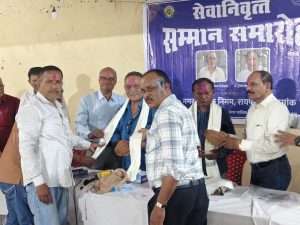 रायपुर – नगर पालिक निगम रायपुर को सेवाएं देकर आज सेवानिवृत्त हुए नगर निगम जोन 8 के राजस्व निरीक्षक सुनील रघुवंशी और दुर्गेश यादव का जोन 8 कार्यालय में निगम को सेवाएं देने पर श्रीफल, शाल, स्मृतिचिन्ह देकर सम्मान निगम जोन 8 जोन कमिश्नर श्री ए. के. हालदार, सहायक राजस्व अधिकारी श्री प्रमोद जाधव, सभी सहायक राजस्व अधिकारियों, जोन 8 के सभी अधिकारियों और कर्मचारियों ने नगर निगम रायपुर के सेवानिवृत्त अधीक्षण अभियंता श्री विनोद देवांगन, श्री राकेश गुप्ता, सर्वेयर श्री योगेन्द्र वर्मा, जोन स्वास्थ्य अधिकारी श्री तरुण ठाकुर सहित मिलकर किया. जोन कमिश्नर, सहायक राजस्व अधिकारियों, अधिकारियों, कर्मचारियों सहित सेवानिवृत्त अधीक्षण अभियंता, सर्वेयर, जोन स्वास्थ्य अधिकारी ने जोन 8 के सेवानिवृत्त राजस्व निरीक्षक श्री सुनील रघुवंशी और श्री दुर्गेश यादव को सुखी, समृद्ध, स्वस्थ, दीर्घायु जीवन हेतु हार्दिक शुभकामनायें दीं.
