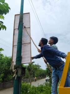 निगम ने संतोषी नगर मार्ग विधानसभा रोड,शंकर नगर मार्ग सहित विभिन्न मुख्य मार्गो से अवैध बैनर -पोस्टर हटाए