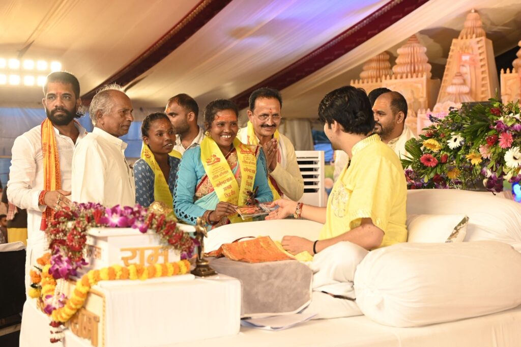 कथा के अंत में आयोजक बसंत अग्रवाल (थान खम्हरिया वाले) एवं पं. धीरेंद्र कृष्ण शास्त्री ने तीनों कलाकारों का शॉल, श्रीफल और प्रतीक चिन्ह देकर सम्मान किया।