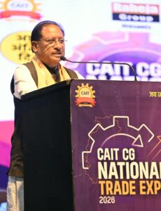 रायपुर। मुख्यमंत्री विष्णु देव साय राजधानी रायपुर स्थित बीटीआई मैदान में कंफेडरेशन ऑफ ऑल इंडिया ट्रेडर्स (कैट) द्वारा आयोजित नेशनल ट्रेड एक्सपो 2026 के समापन समारोह में शामिल हुए। इस अवसर पर मुख्यमंत्री श्री साय ने कार्यक्रम को संबोधित करते हुए कहा कि छत्तीसगढ़ में कृषि के साथ-साथ व्यापार एवं उद्योग के लिए भी अनुकूल वातावरण बना है, जिसका परिणाम है कि व्यापारी और उद्योग जगत के प्रतिनिधि राज्य में निवेश के लिए आगे आ रहे हैं।